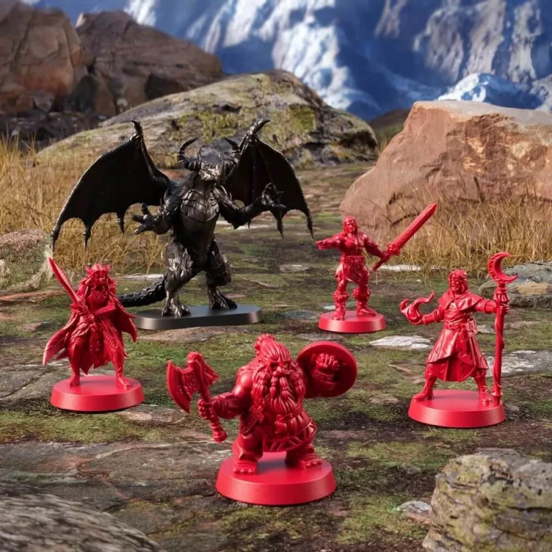 Contiene libro con 10 misiones, tablero de 2 caras, 102 cartas de juego ilustradas, una detallada miniatura de dragón, 4 miniaturas de héroes y 67 miniaturas detalladas de cartón.