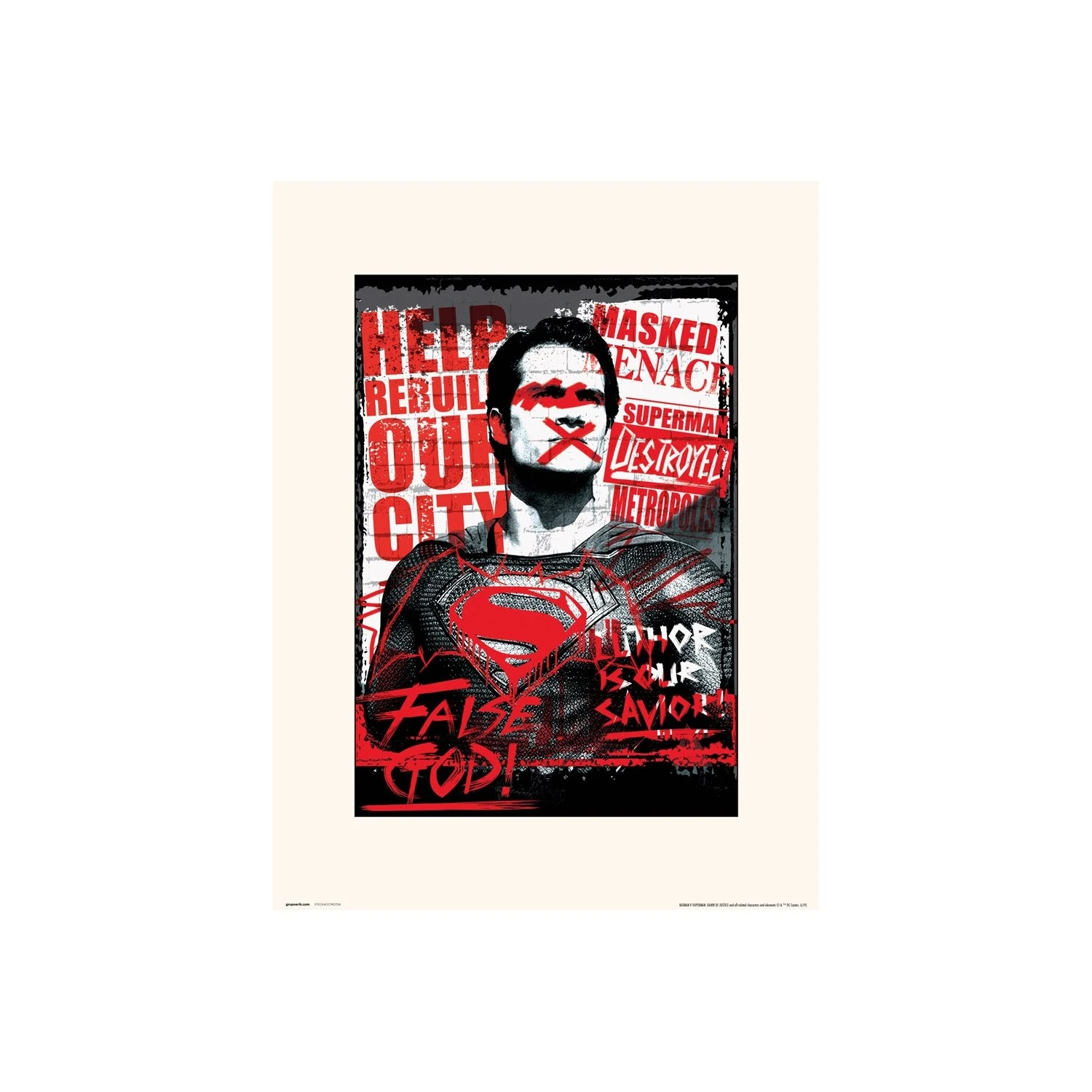 Lamina Dc Comics Batman V Superman Superman False God con esta lamina podrás darle un toque diferente a la decoración de tu habitación, espacio de trabajo, etc. Tienen una impresión a todo color con acabado en brillo, tiene mucha más calidad que un poster y su papel es de un gramaje de 250gr. Tiene unas medidas de 30 x 40 cm. Se envia debidamente protegido.