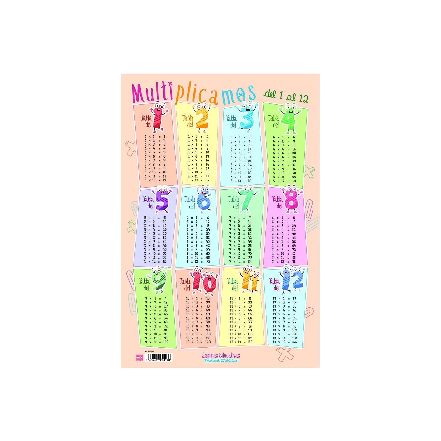 Lámina Educativa Multiplicamos Del 1 Al 12 será la compañera perfecta para todo el curso escolar. Tenemos los diseños más solicitados por todo el mercado. Tiene unas medidas de 40 x 59,5 cm. Está fabricada en polipropileno.