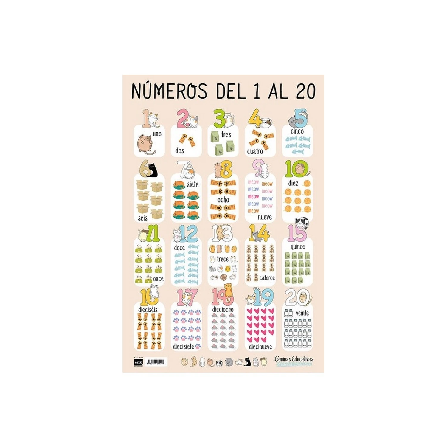 Lámina Educativa Numeros del 1 al 20 será la compañera perfecta para todo el curso escolar. Tenemos los diseños más solicitados por todo el mercado. Tiene unas medidas de 40 x 59,5 cm. Está fabricada en polipropileno.