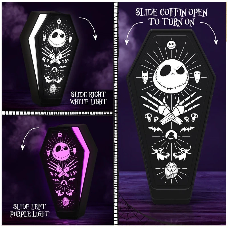Esta lámpara 3D de Pesadilla Antes De Navidad con forma de cofre es perfecta para iluminar cualquier espacio de tu hogar de una manera original o para utilizar simplemente como elemento decorativo.