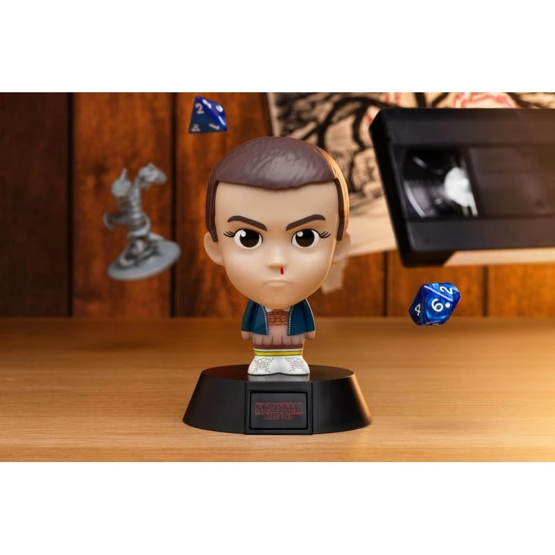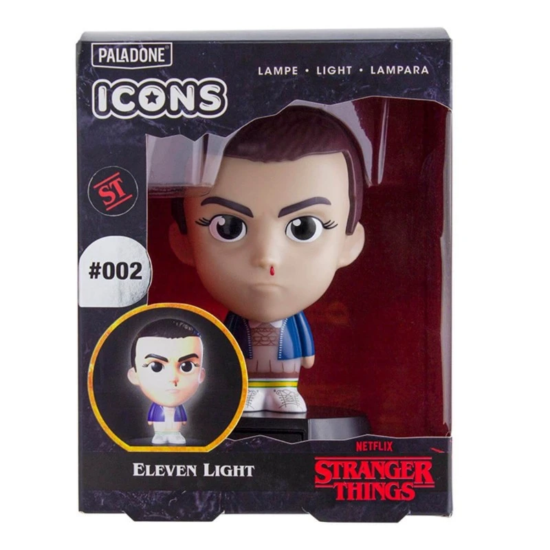 Esta lámpara icon está inspirada en Once (Eleven), una de las protagonistas principales de la serie Stranger Things. Ha sido fabricada de PVC y tiene un tamaño de 11 centímetros de altura aproximadamente. Funciona con 2 pilas AAA (no incluidas). Se envía en su caja protectora.