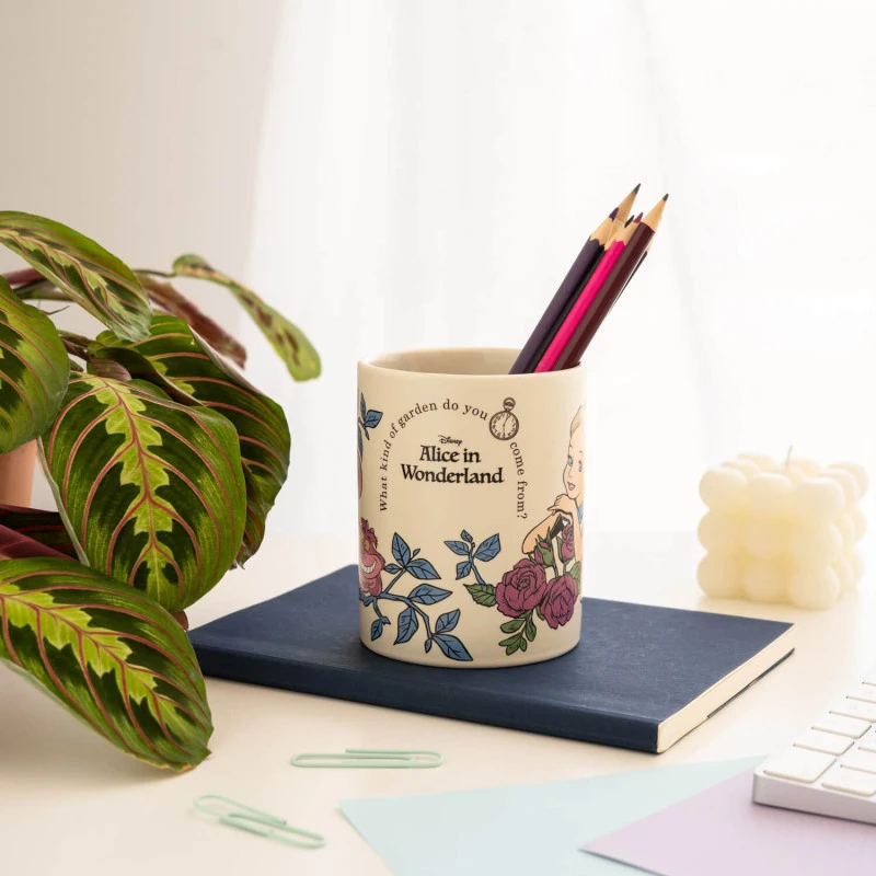 Este lapicero de Alicia en el País de las Maravillas es el mejor complemento para decorar tu escritorio y tener todos tus lápices y bolígrafos organizados. Está fabricado en cerámica.