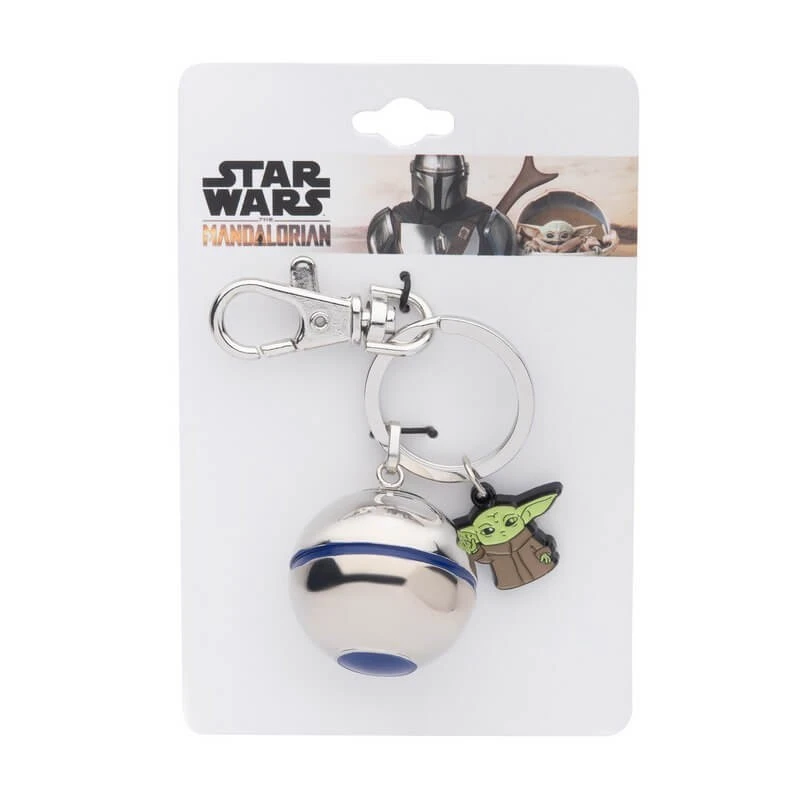 Este llavero de Star Wars: The Mandalorian está fabricado en acero y se compone de dos piezas: una réplica extríble en 3D de la palanca de cambios de la nave Razor Crest y una silueta pequeña de Grogu, también conocido como Baby Yoda.