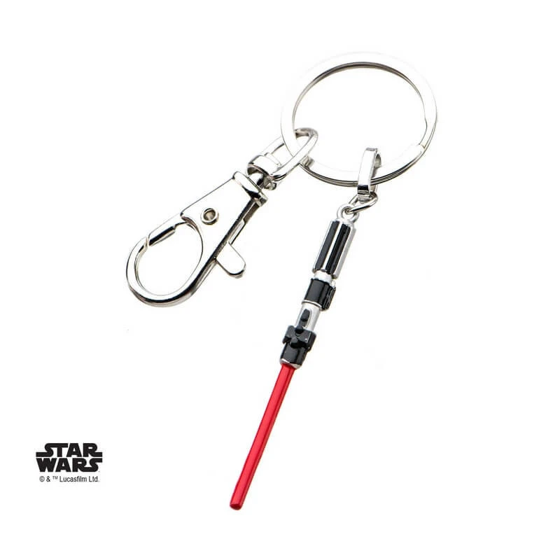 Este llavero de Star Wars está inspirado en el sable láser de hoja roja de Darth Vader. Está fabricado en aleación de zinc de gran calidad y cuenta con anilla y cierre de mosquetón.