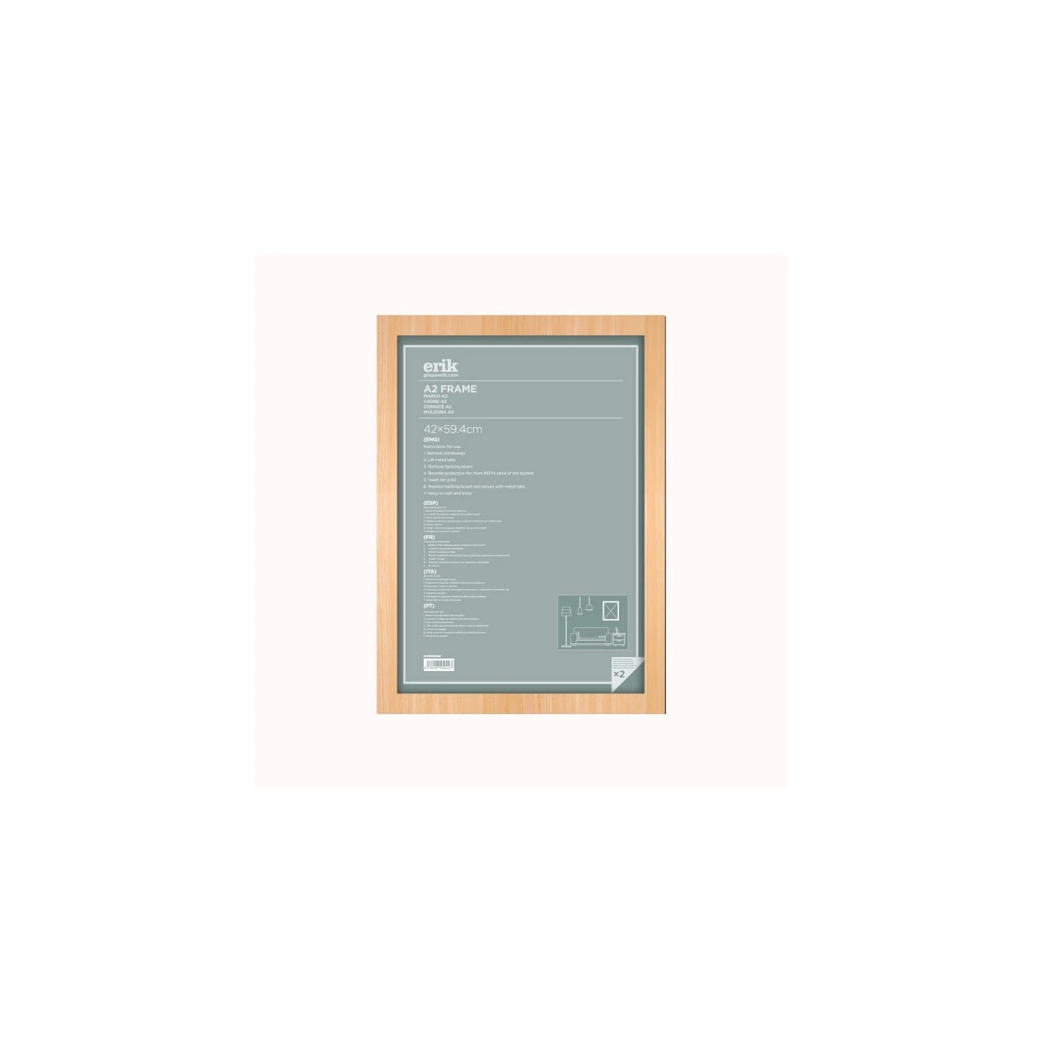 Los marcos son el complemento perfecto para los posters, una forma ideal de decorar cualquier hogar. Este modelo está diseñado para láminas A2 (42 x 59,4 cm), fabricado en MDF en color Haya, con un ancho de 30 mm y una profundidad de 15 mm. La tapa trasera es de MDF con grosor de 2 mm, e incluye anclajes de metal para colgarlo, y la parte frontal es de estireno de 1 mm. El marco lleva un film protector en la parte delantera, y se envía retractilado y con refuerzos de papel para proteger las esquinas.