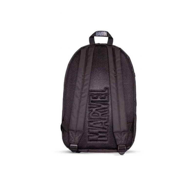 Esta mochila es el complemento perfecto para llevar al colegio, a la universidad o a cualquier parte. Es de color negro y cuenta con una tira con el logo de Marvel cubriendo cada una de las cremalleras.