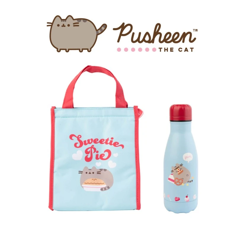 ¡Este pack de productos es el regalo perfecto para cualquier fan de Pusheen! Incluye una bolsa para el almuerzo y una botella metálica a juego de la colección Purrfect Love de Pusheen.