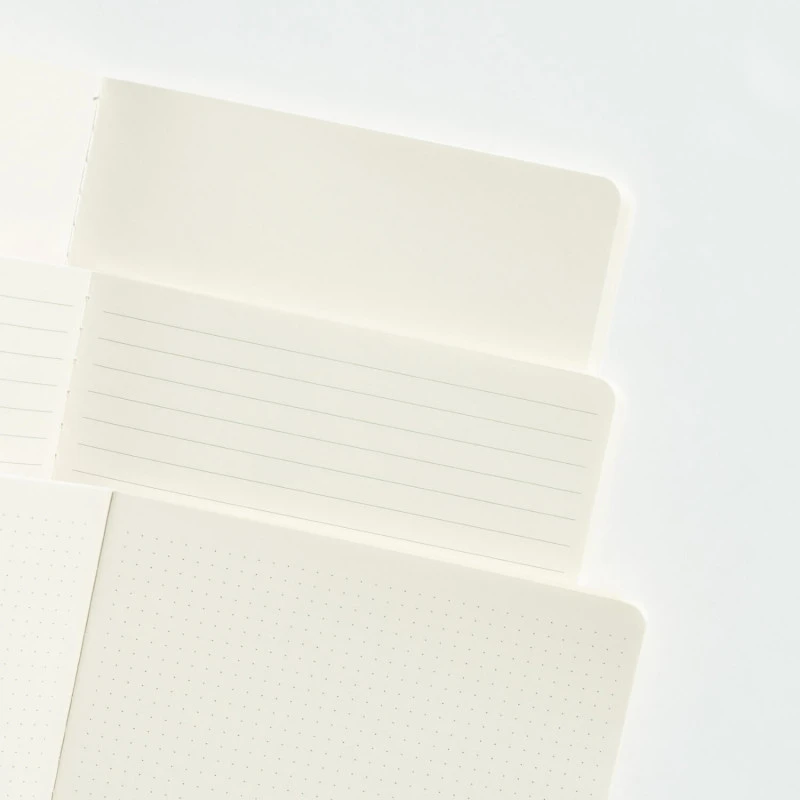 La cubierta exterior es de tapa blanda fabricada con papel impreso de 300 gr, mientras que las páginas interiores están hechas de papel de 80 g/m2. Cada cuaderno tiene un formato de hoja diferente: líneas, bullet y lisa.