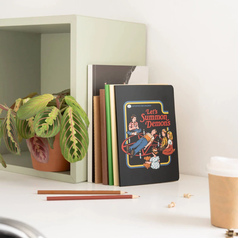 Este pack de cuadernos de Steven Rhodes incluye 3 cuadernos con diferentes diseños del artista e ilustrador australiano. Tienen tamaño A5 con unas medidas de 14,8 x 21 cm y cuentan con 32 hojas (64 páginas) cada uno.
