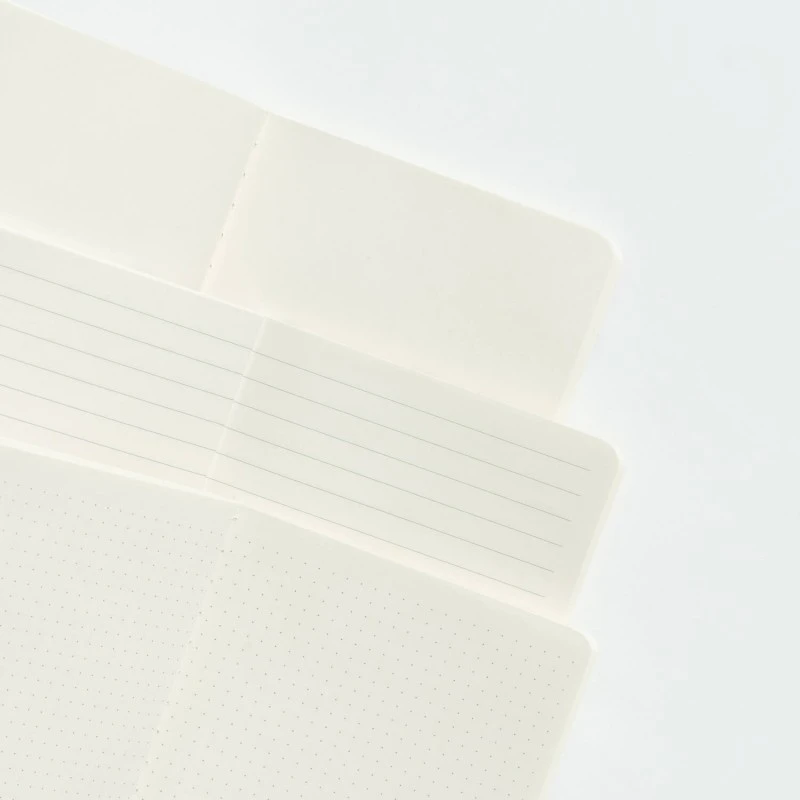 Cada cuaderno cuenta con 32 hojas (64 páginas) y tiene unas medidas de 10,5 x 14,8 cm. La cubierta exterior es de tapa blanda fabricada con papel impreso de 300 gr, mientras que las páginas interiores están hechas de papel de 80 g/m2. Cada uno tiene un tipo de hoja diferente: líneas, bullet y lisa.