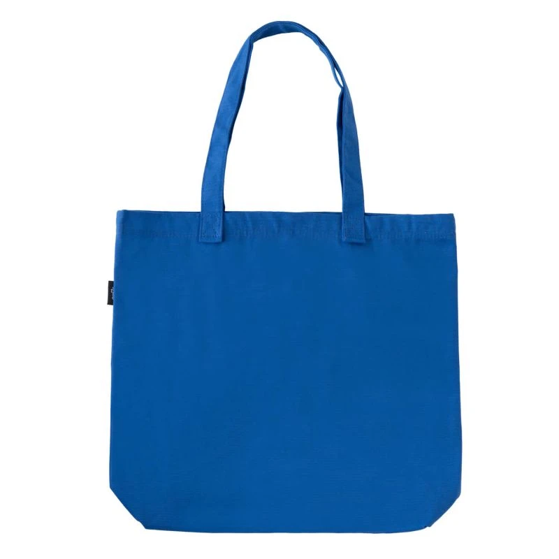 La tote bag está fabricada de tela de algodón 100% y mide aproximadamente 41 x 37 cm. Cuenta con dos asas para llevarla colgada cómodamente del hombro.