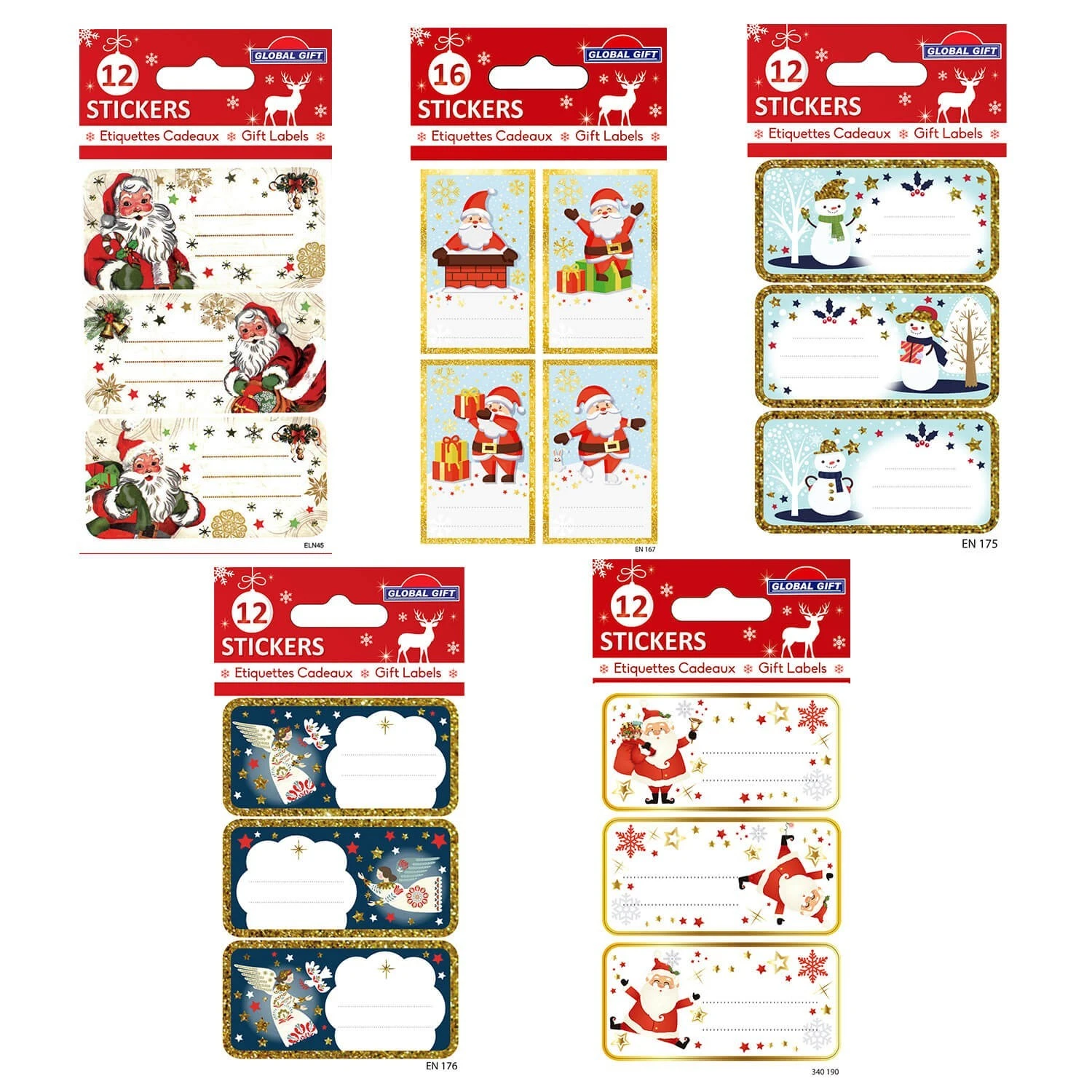 Este pack de etiquetas adhesivas navideñas es ideal para decorar tus regalos o tus libros de una forma original. Incluye 5 paquetes de pegatinas con diferentes modelos y diseños. Cada paquete contiene 4 hojas con 3 unidades cada una, por lo que incluye un total de 12 stickers. Cada pegatina tiene un tamaño de 7,5 cm de alto por 12 cm de ancho.