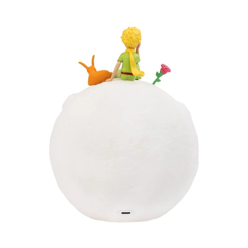 - Lámpara El Principito 3D: Cuenta con un diseño en 3D y está fabricada en PVC de gran calidad. Incluye un modo de iluminación que se activa a través de un botón de control. Necesita 3 pilas AAA (no incluidas) o un cable USB tipo C (incluido) para su funcionamiento.