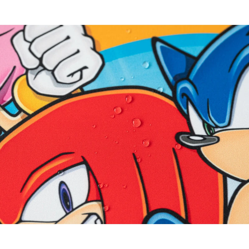 - Alfombrilla Ratón XL Sonic The Hedgehog: Mide 80 centímetros de ancho por 35 de alto y cuenta con espacio para la colocación tanto del teclado como del ratón. Su superficie es de alta calidad y está pensada y diseñada para un uso preciso e intensivo del ratón. También se encuentra impermeabilizada para proteger tu escritorio en caso de que se derrame algún líquido accidentalmente. Su base de goma antideslizante se adhiere al escritorio impidiendo que se mueva durante su uso. Los bordes reforzados alargan la vida útil de la alfombrilla.