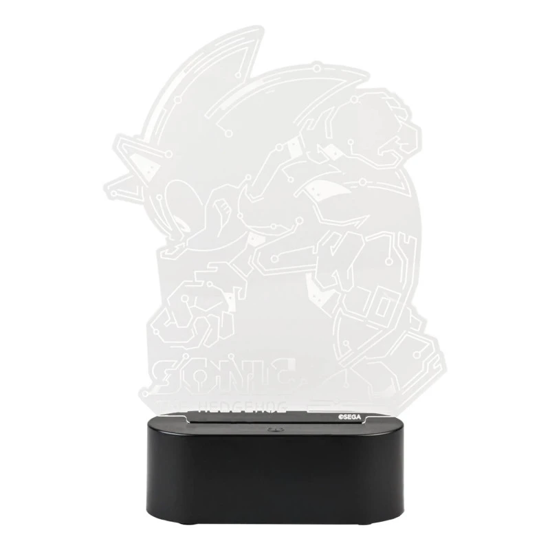 - Lámpara Led De Mesa Sonic The Hedgehog: Incluye diferentes modos de iluminación que se activan mediante un botón de control situado en la parte superior de la base. Funciona con 3 pilas AAA 1.5V (no incluidas) o un cable USB tipo C con entrada 5V DC 1A (incluido). Está fabricada en ABS y metacrilato y mide aproximadamente 20 cm de alto por 17 cm de ancho por 5,5 cm de profundidad.