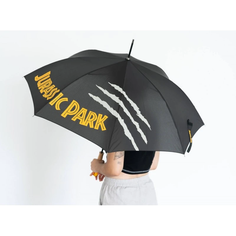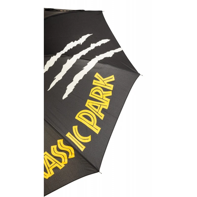 Este paraguas de Jurassic Park está fabricado en poliéster y cuenta con una estructura resistente hecha de metal y PVC con sistema de apertura automático. Mide 90 cm de alto y tiene un diámetro de 105 cm cuando está abierto.