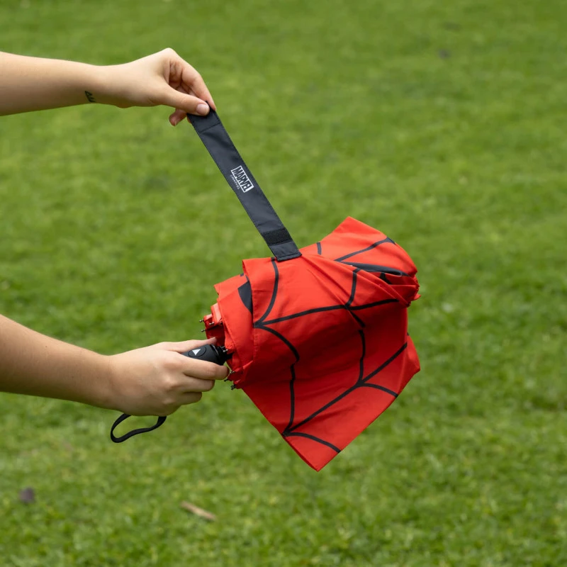 Este paraguas de Spider-Man está fabricado con tela de poliéster 100% de gran calidad y tiene una estructura plegable y resistente hecha de metal y PVC, con sistema de apertura automático que se acciona a través de un botón situado en el propio mango. Tiene unas medidas una vez abierto de 100 cm de diámetro y 57 cm de alto mientras que estando cerrado su tamaño es de 30 cm por 7 cm de diámetro.