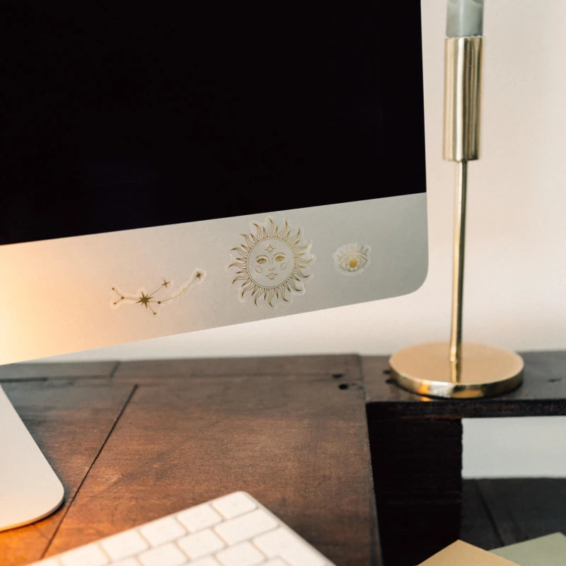 Decora y personaliza tu portátil, smartphone, tablet o cualquier otro objeto con este set de pegatinas de la colección Astral. Incluye 81 stickers diferentes con diseños inspirados en el tarot y la astrología. Están fabricadas con vinilo adhesivo de gran calidad y son reutilizables y resistentes al agua.