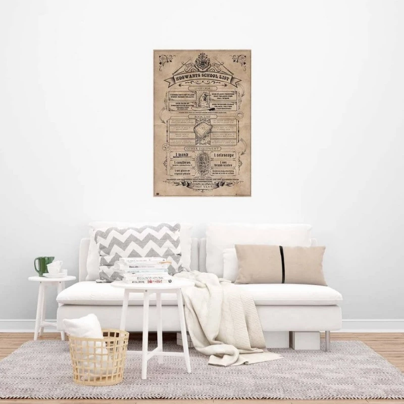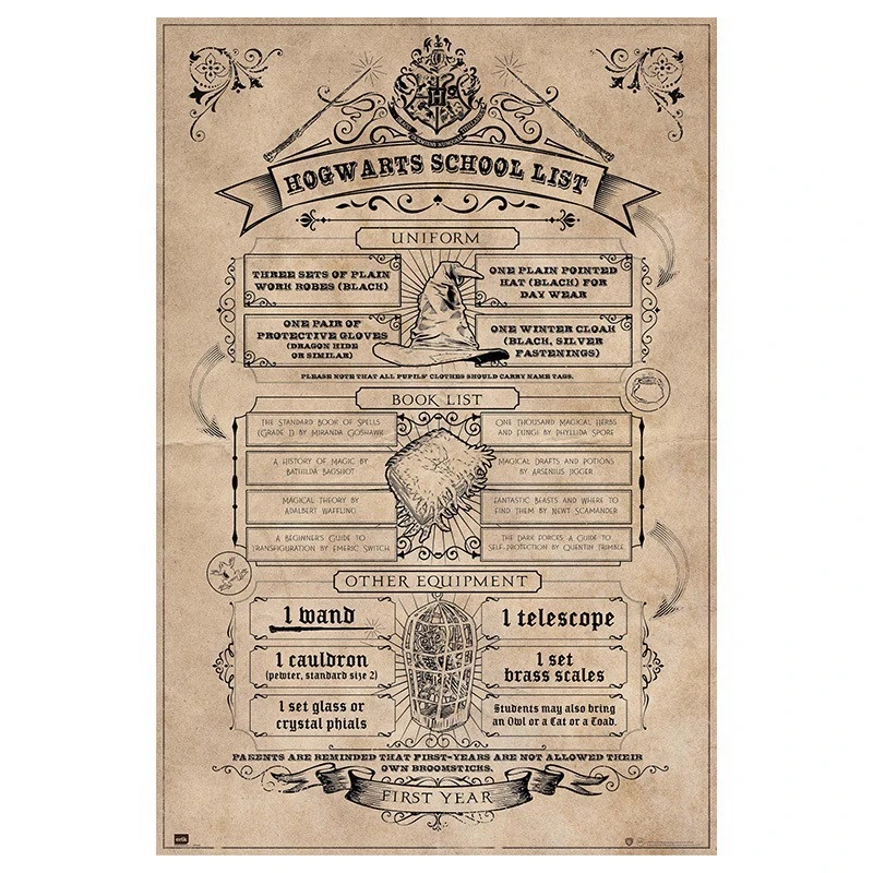 - Decora tus paredes con este póster de la lista del material escolar que debe tener todo alumno de Hogwarts.