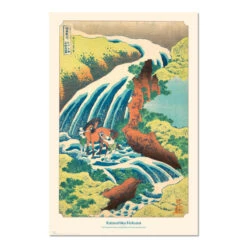 Esta obra del artista japonés Katsushika Hokusai muestra al general Minamoto no Yoshitsune lavando su caballo favorito bajo una cascada.