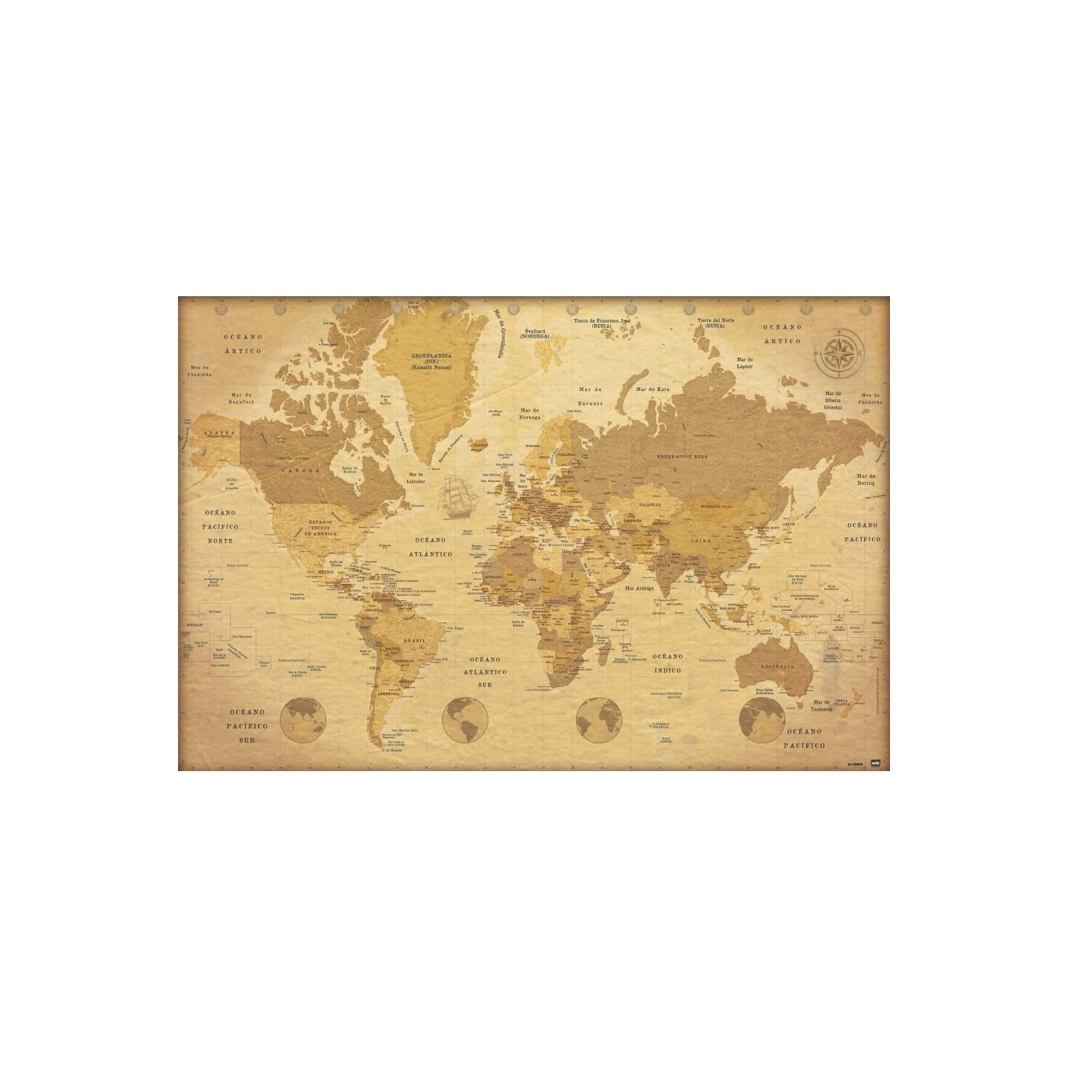 Poster Mapamundi Estilo Vintage