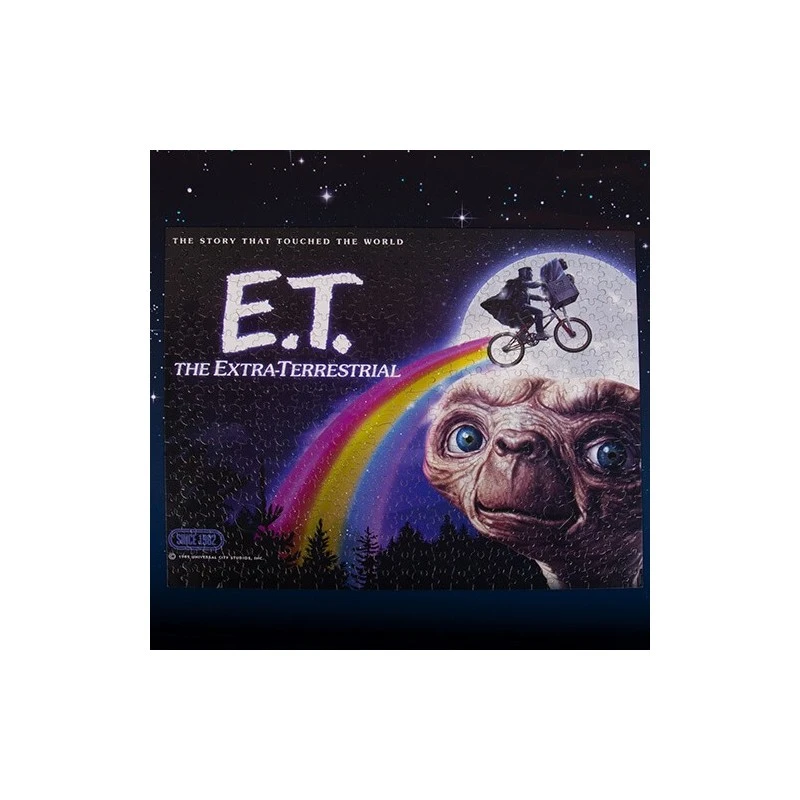 Da vida a la inolvidable aventura de E.T. con dos escenas únicas de la clásica película: Por un lado la icónica escena de la bicicleta con la luna al fondo, y por el otro, E.T. y Elliott en el bosque.