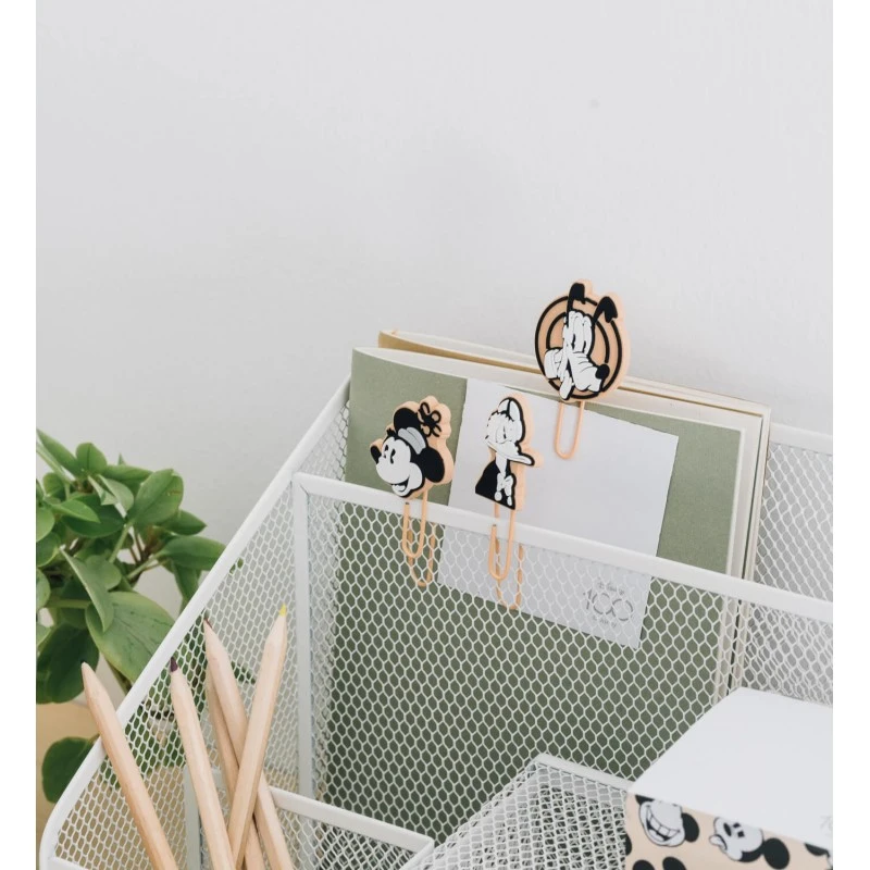 Este set de clips pertenece a la colección 100 Aniversario de Disney y está compuesto por 4 clips con diferentes toppers inspirados en personajes como Mickey Mouse, el pato Donald o Pluto. Cada clip mide aproximadamente 5,3 centímetros de altura y están fabricados en metal con topper en PVC.