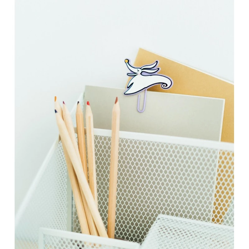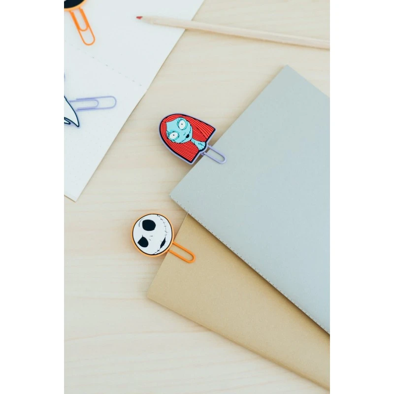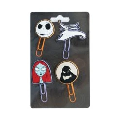 Este set de clips está compuesto por 4 clips con diferentes toppers inspirados en personajes de Pesadilla Antes de Navidad. Cada clip mide aproximadamente 5,3 centímetros de altura y están fabricados en metal con topper en PVC.