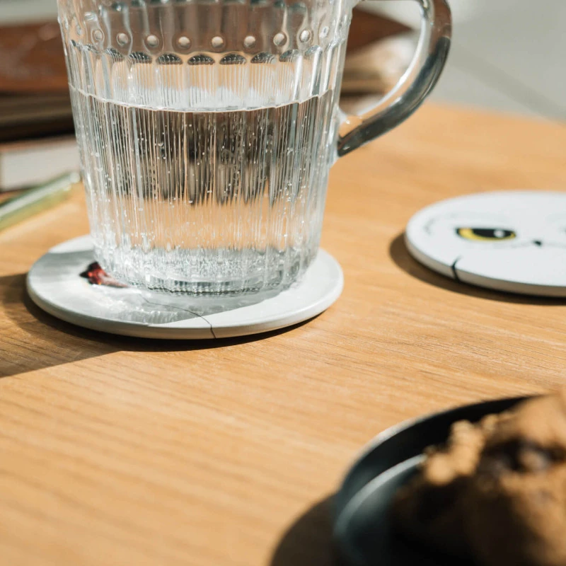 Este set de posavasos de Harry Potter tiene un diseño inspirado en el escudo de Hogwarts y contiene dos posavasos ideales para apoyar las bebidas y proteger así tu mesa. Miden 9 cm de diámetro cada uno.