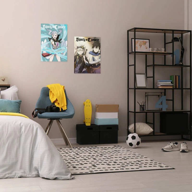 Este set de mini pósters de Black Clover es ideal para decorar las paredes de tu habitación o cualquier lugar de tu casa. Contiene 2 pósters de 38 cm de ancho por 52 cm de alto, fabricados en papel de 157 g/m2 de gran calidad.