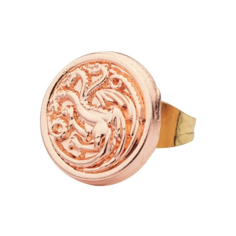 El lobo de la Casa Stark mide 1.2 cm y es de color plateado, el dragón de la casa Targaryen mide 1 cm y es de color oro rosa, el león de la Casa Lannister es dorado y mide 1.1 cm, el ciervo de la Casa Baratheon es plateado y mide 1.2 cm, y la Mano del Rey mide 1.8 cm y es de color dorado.