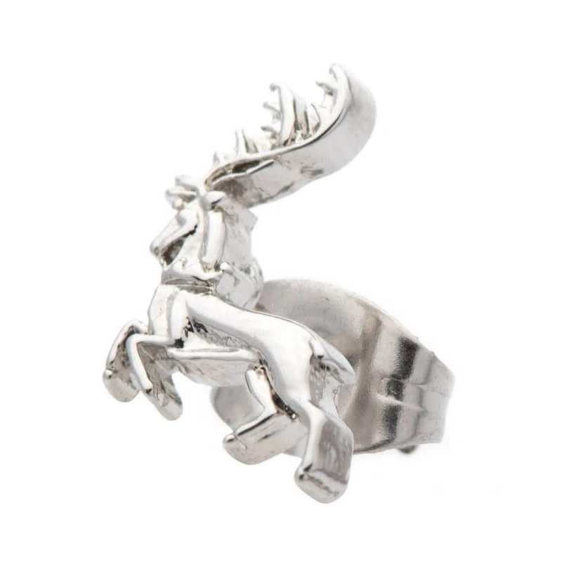 Este set de pendientes de Juego de Tronos incluye 5 modelos diferentes de pendientes: el broche de la Mano del Rey y los sellos de cuatro de las grandes casas de Poniente. Están fabricados en acero inoxidable de gran calidad esmaltado en diferentes colores.