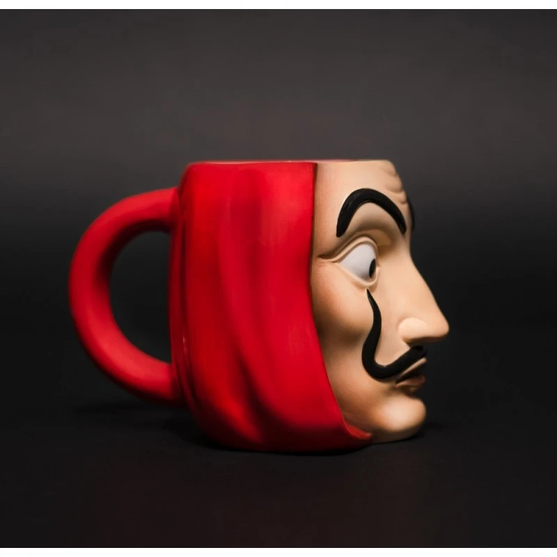 Taza 3D La Casa De Papel Mascara será tu compañera perfecta mientras haces un maraton de tu serie de atracadores favoritos. Tiene un diseño con efecto 3D inspirado en la famosa mascara de Dalí, lo cual hará que siempre que la veas te recuerde a los personajes y a la gran trama de la serie. Tiene una capacidad de 350 ml, no apta para lavavajillas. Se envía en su propia caja. Licencia 100% oficial.