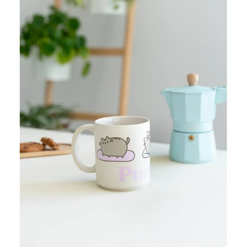 Esta taza de Pusheen está fabricada en cerámica y tiene una capacidad de 350 mililitros. Respecto a su tamaño, tiene unas medidas de 10 cm de alto por 8 cm de diámetro. Es apta tanto para lavavajillas como para microondas. Viene protegida dentro de una caja de cartón.