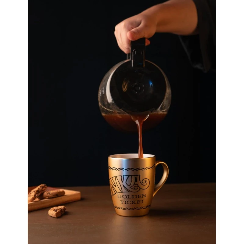 - Taza de Willy Wonka, inspirada en el ticket dorado.