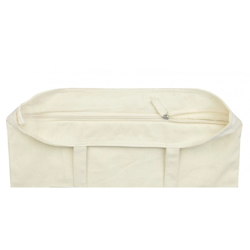Está fabricado en tela de lona y diseñado con motivos serigrafiados. Cuenta con cierre de cremallera y tiene dos asas para llevarlo cómodamente al hombro, un bolsillo interior con cremallera y otros dos bolsillos interiores más.