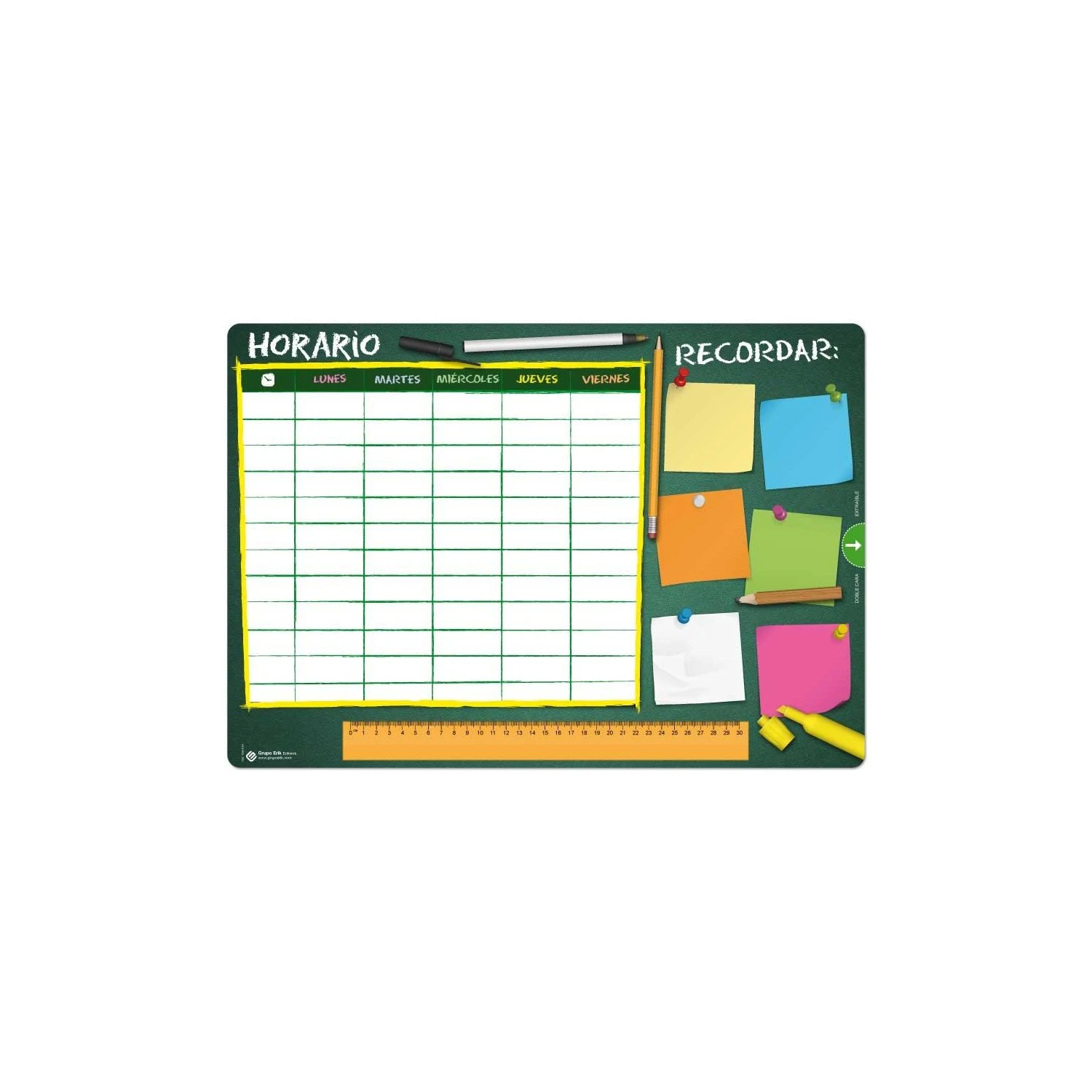 Cubre la mesa de tu escritorio de una manera original y diferente con este Vade Escolar Horario Escolar. Cuenta con un tamaño de 35×49 cm y acabado final plastificado para una mayor durabilidad.